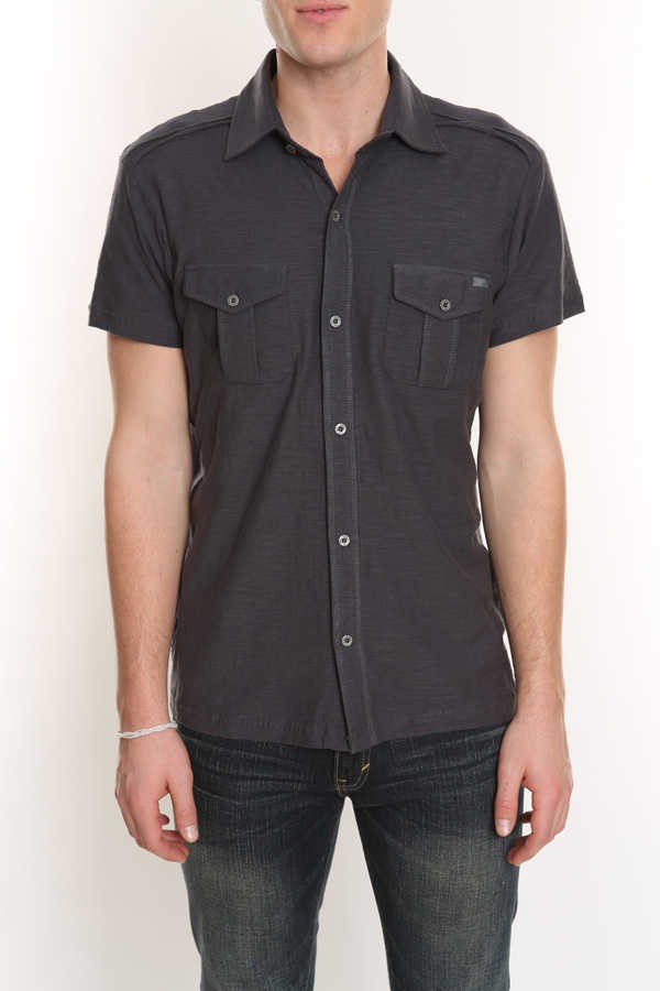 Slim fit. Two chest pockets. Silver grommet detail. Grinding and nicking at hems. 100% cotton. - Additional Information